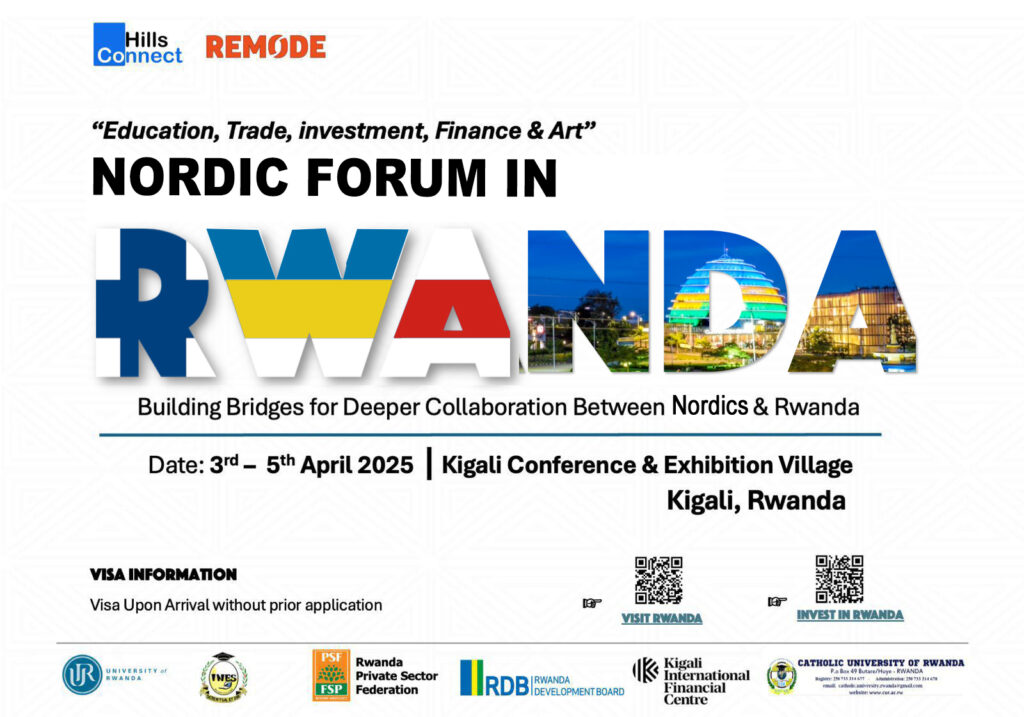 In recent years, Finland and Rwanda have developed a robust partnership characterized by dynamic exchanges and collaborative efforts across various sectors. Following successful initiatives like the Rwandan delegation’s visit to Finland in October 2021 and the Rwanda Business Forum held in Finland in September 2023, the Embassy of the Republic of Rwanda to the Nordic Countries in collaboration with Rwanda Develpment Board (RDB), Rwandan Ministry of Education(MINEDUC), Rwanda Convention Bureau (RCB), National Agricultural Export Development Board (NAEB), Rwanda Finance Limited (RFL), Private Sector Federation (PSF), Rwandan and Finnish Universities and other educational institutions, Embassy of the Republic of Rwanda to the Nordic Countries and Finland’s Ministry of Foreign Affairs – Africa Department and Finnish Ambassador to Rwanda, REMODE and including us here at Hills Connect are delighted to announce the Finland-Rwanda Forum in Rwanda scheduled for April 3-5, 2025, in Kigali, Rwanda.